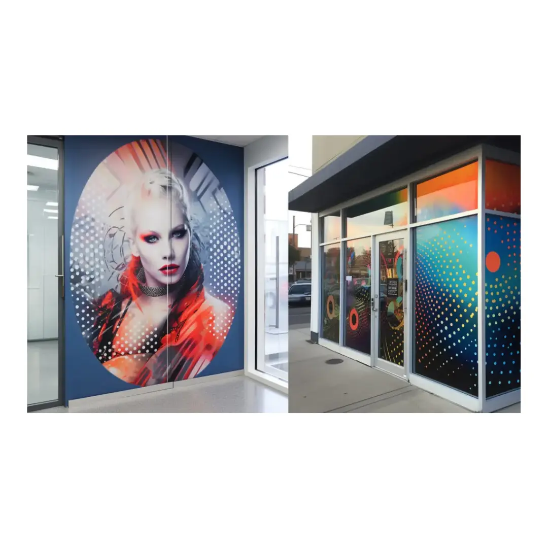 Aplicaciones comunes: Fachadas, murales interiores, publicidad temporal, campañas promocionales.